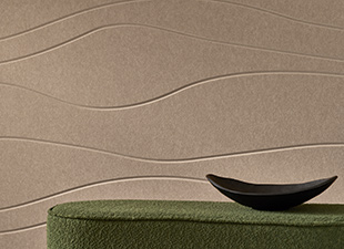 This family of acoustic wallcoverings combines the efficiency of high-performance acoustic bases with different types of surface textiles : suedine, jersey knit or even printed textures on fleece. These fine materials create a welcoming and elegant atmosphere where the decors and muted shades create a comfortable feeling. These acoustic textile wallcoverings represent an ideal decorative and acoustic solution. Their acoustic corrective qualities allow the effective treatment of problems such as vibrations in meeting rooms and hotel receptions or to treat the Lombard effect also called the “cocktail effect” in restaurants and function rooms.