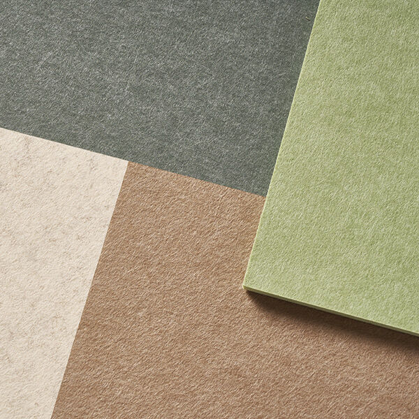 Le feutre compact associe absorption acoustique efficace et esthétique soignée. Fabriqué à partir de fibres recyclées, teinté dans la masse et calandré, il offre une surface lisse, résistante aux chocs, au toucher textile chaleureux.